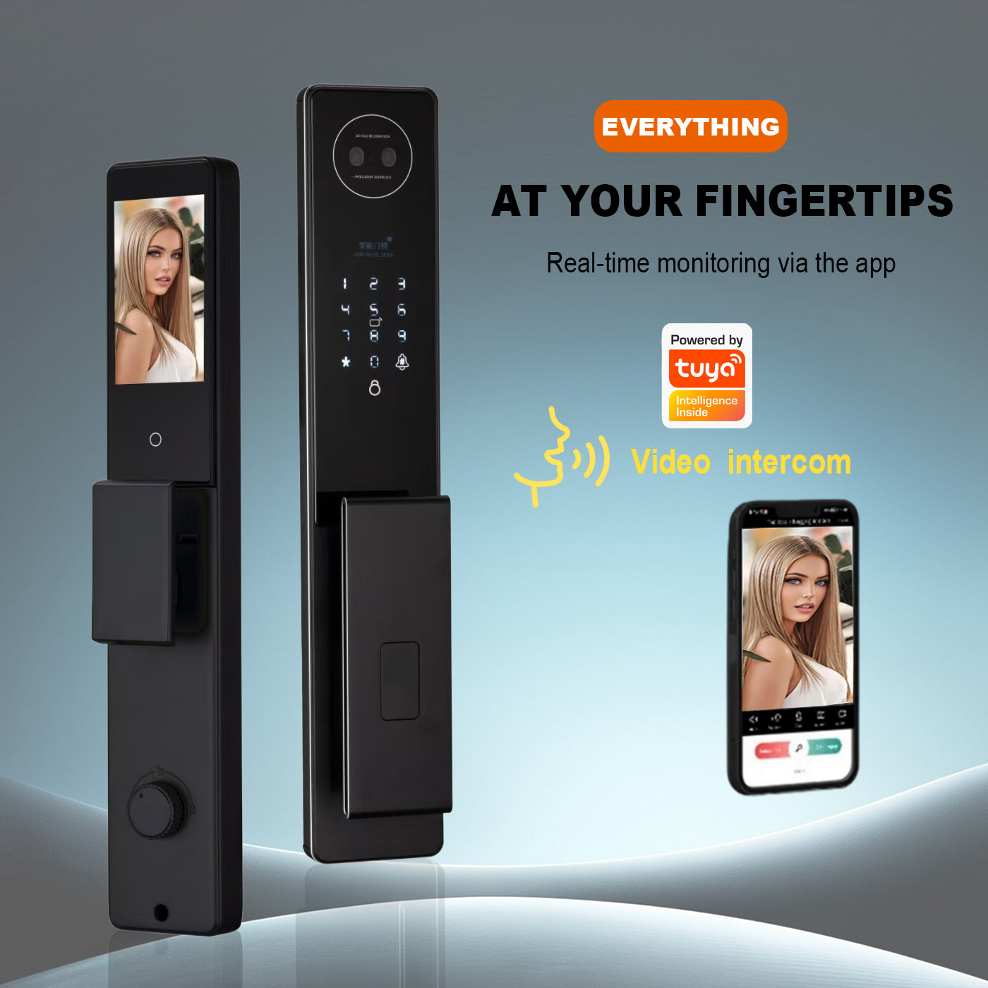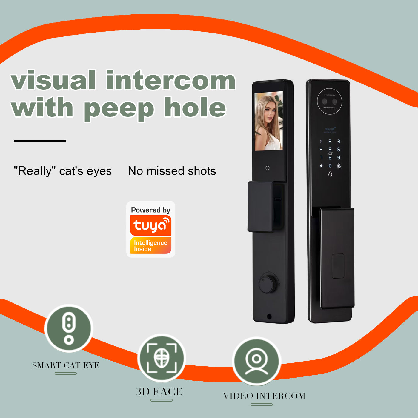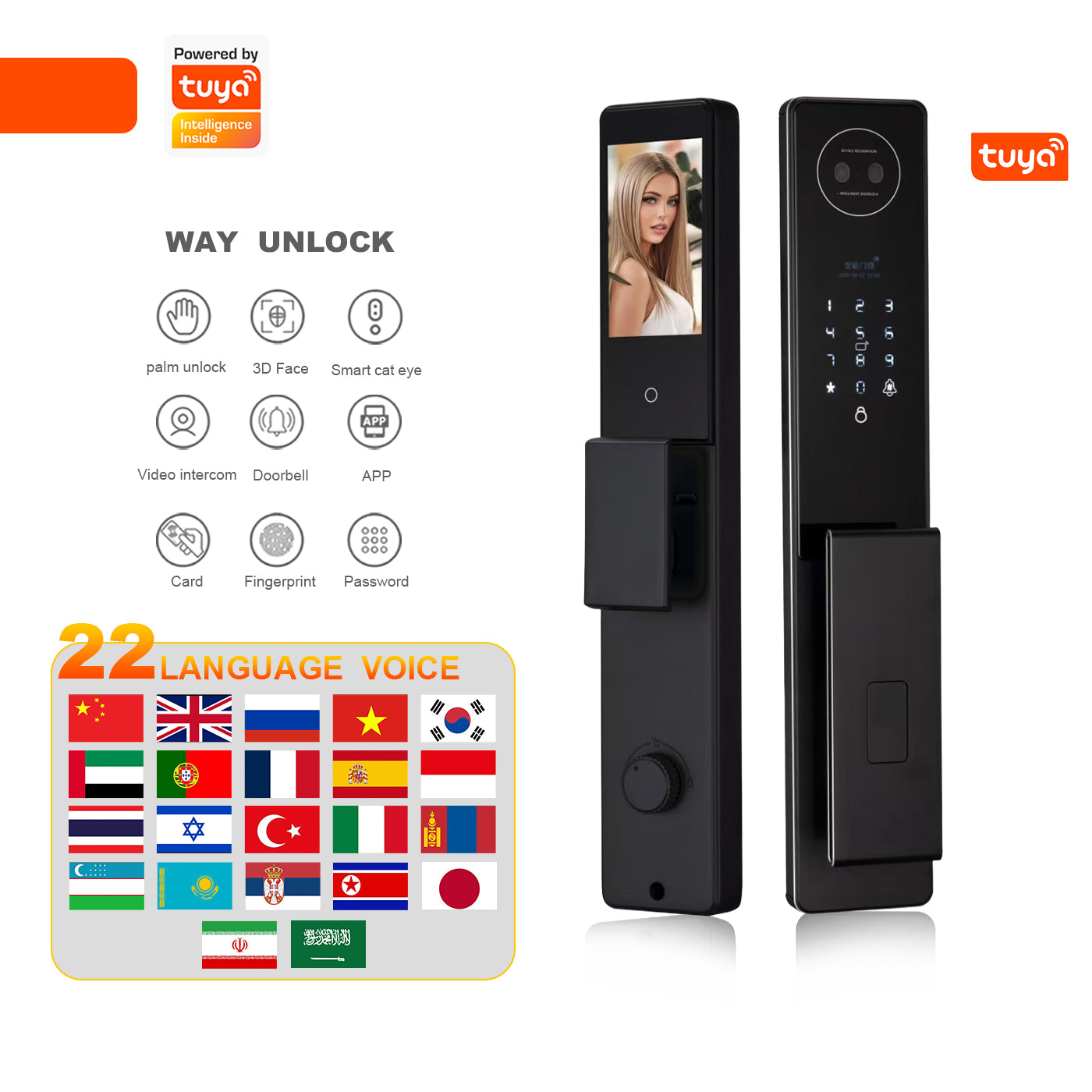 Language screen lock 3D facial recognition intelligent door lock with camera video and voice